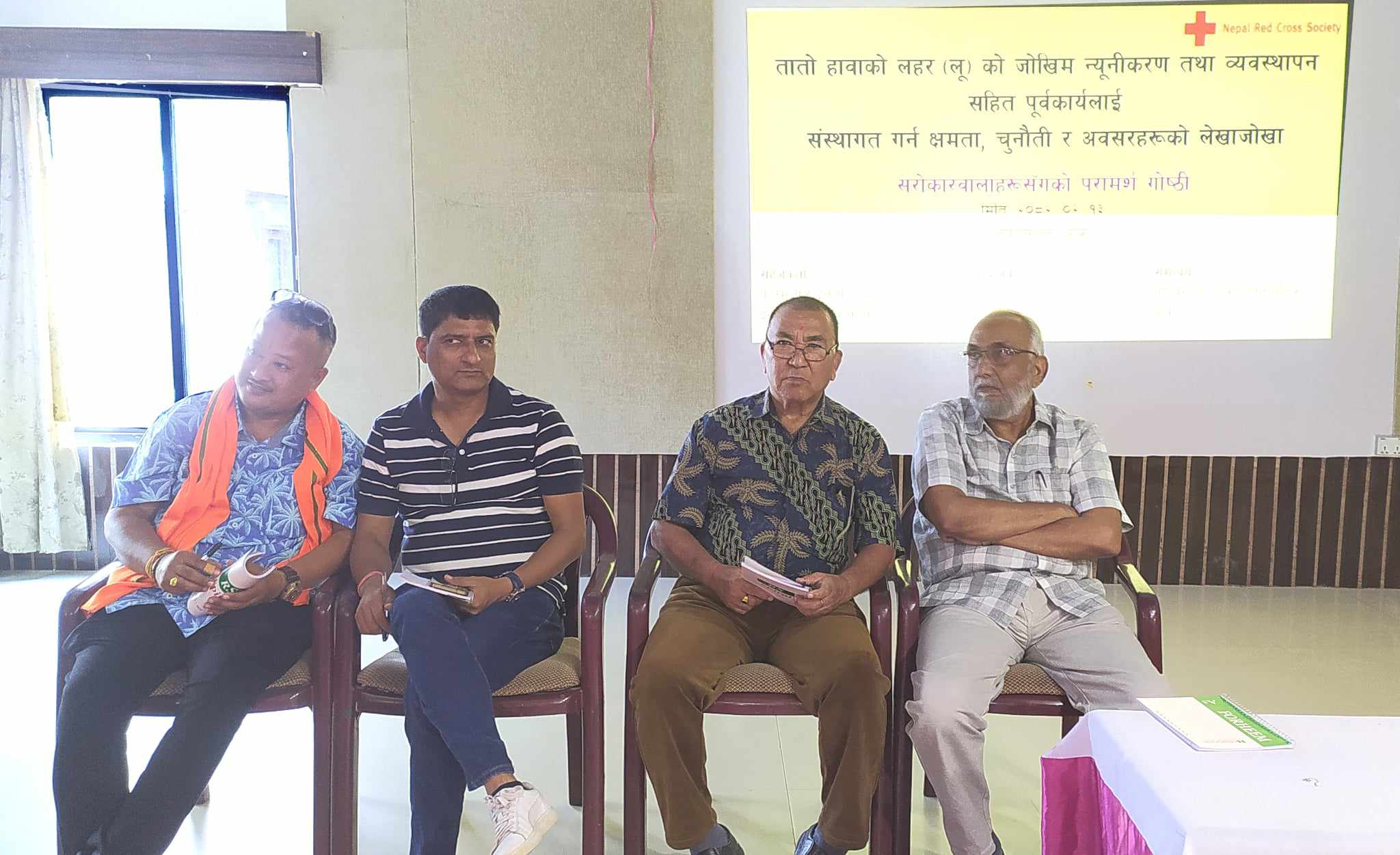 नेपालगंज उपमहानगरपालिका विपद् व्यवस्थापन समितिका संयोजक समीर प्रताप सिंहले तातो हावाको लहरबाट बच्नका लागि नेपाल रेडक्रस सोसाइटीसंगको सहकार्यमा प्रचार प्रसार, नमूनाका रुपमा जस्तापाताबाट निर्माण भएको घरको छानामा सेतो रंगल पेन्टिङ्ग गरिएको र बसपार्कमा कुलिङ्ग सेन्टर निर्माण कार्य जारी रहेको लगायत गतिविधि संचालन हुँदै आएको बताउनु भयो । अमेरिकन रेडक्रसको सहयोगमा नेपाल रेडक्रस सोसाइटीद्वारा नेपालगंज उपमहानगरपालिकाको समन्वयमा कार्यक्रम संचालन भैरहेका छ । गोष्ठी फोरम फर ईनर्जी एण्ड इन्भाईरोमेन्ट डेभलपमेन्ट काठमाण्डौका प्रमुख बुद्धि कुमालले सहजीकरण गर्नु भएको थियो । नेरेसो बाँके शाखाका सभापति गोवर्धन सिंह सम्झनाको अध्यक्षतामा सम्पन्न कार्यक्रममा शाखाका मन्त्री अजीजअहमद सिद्दिकी, कोषाध्यक्ष राकेशबहादुर श्रीवास्तव, नेपालगंज उपमहानगरपालिका विपद् शाखा प्रमुख दिपेन्द्र श्रेष्ठ विषयगत सरकारी तथा गैरसरकारी कार्यालयका प्रमुख एवं प्रतिनिधि लगायतको सहभागिता रहेको थियो भने कार्यक्रम संचालन नेरेसो बाँके शाखाका उपनिर्देशक दोलखबहादुर डाँगीले गर्नु भएको थियो ।